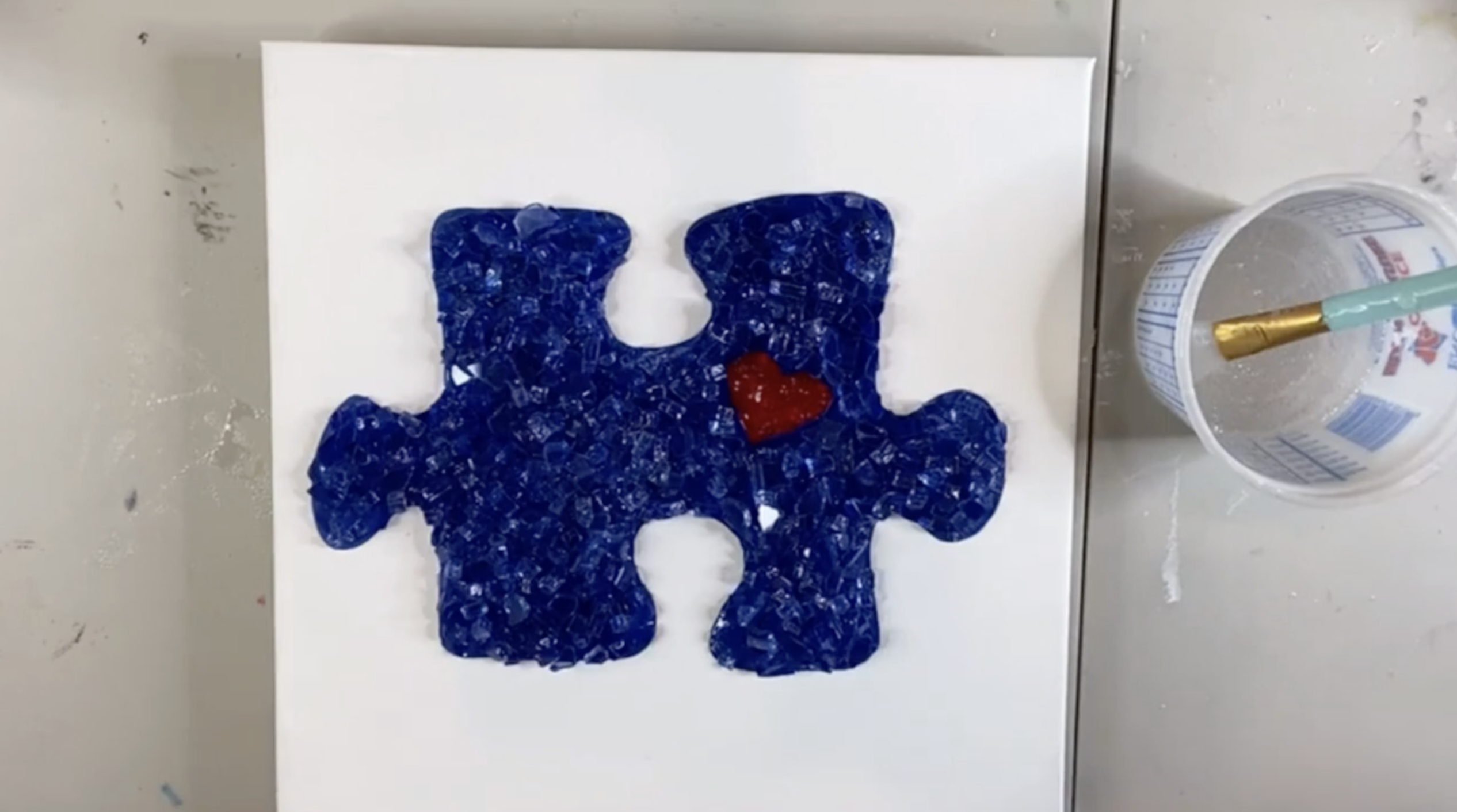 This puzzle piece project is such a meaningful one, especially during Autism Awareness Month. The red heart adds that personal touch, the cobalt glass gives it beautiful sparkle and dimension, and the resin pulls it all together into a finished keepsake. It is simple enough to recreate, but still special enough to gift. Whether you make it for a loved one, for your home, or as an awareness piece for April, this one is full of heart in every sense of the word.