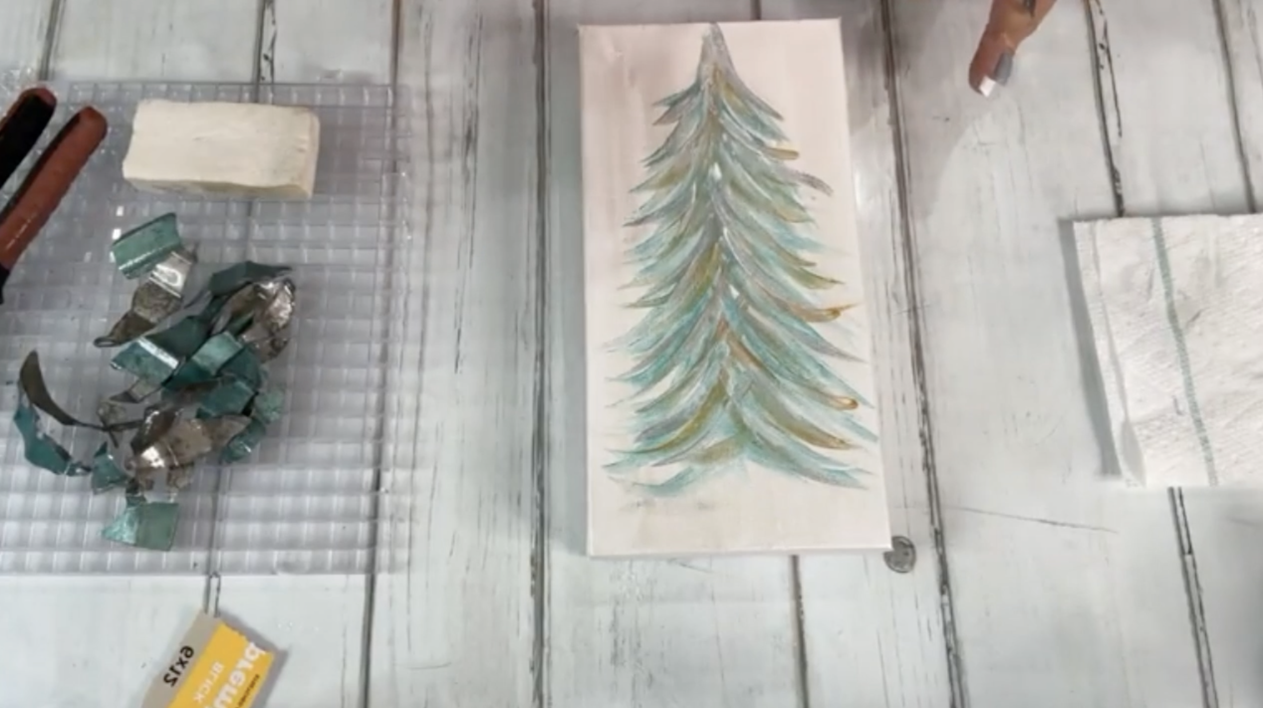 This festive mixed media project proves that even broken things can become beautiful again. In this glass and resin Christmas Tree tutorial, we’ll transform a shattered vase into a shimmering mercury-glass-inspired tree on a 6x12 canvas. With metallic paints, glass pieces, and resin, you’ll create an elegant and reflective piece of holiday art!