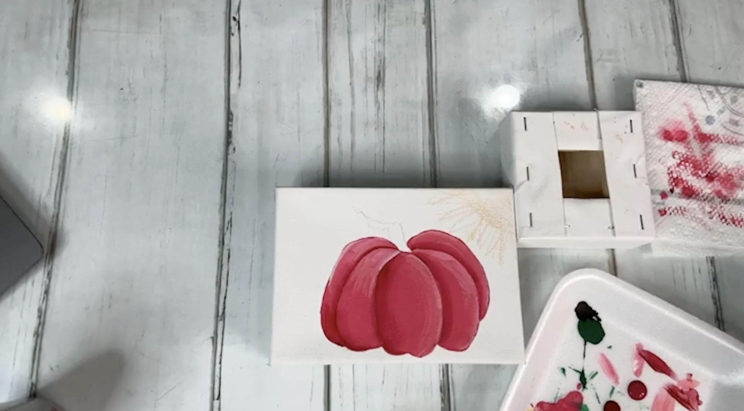 We painted the stem with Burnt Umber and added a highlight using white blended with brown to reflect the same light direction. Don’t forget to add highlights to your stem - real stems have texture too! I also added a hint of yellow and orange to the top of the pumpkin to give it some extra warmth and contrast!