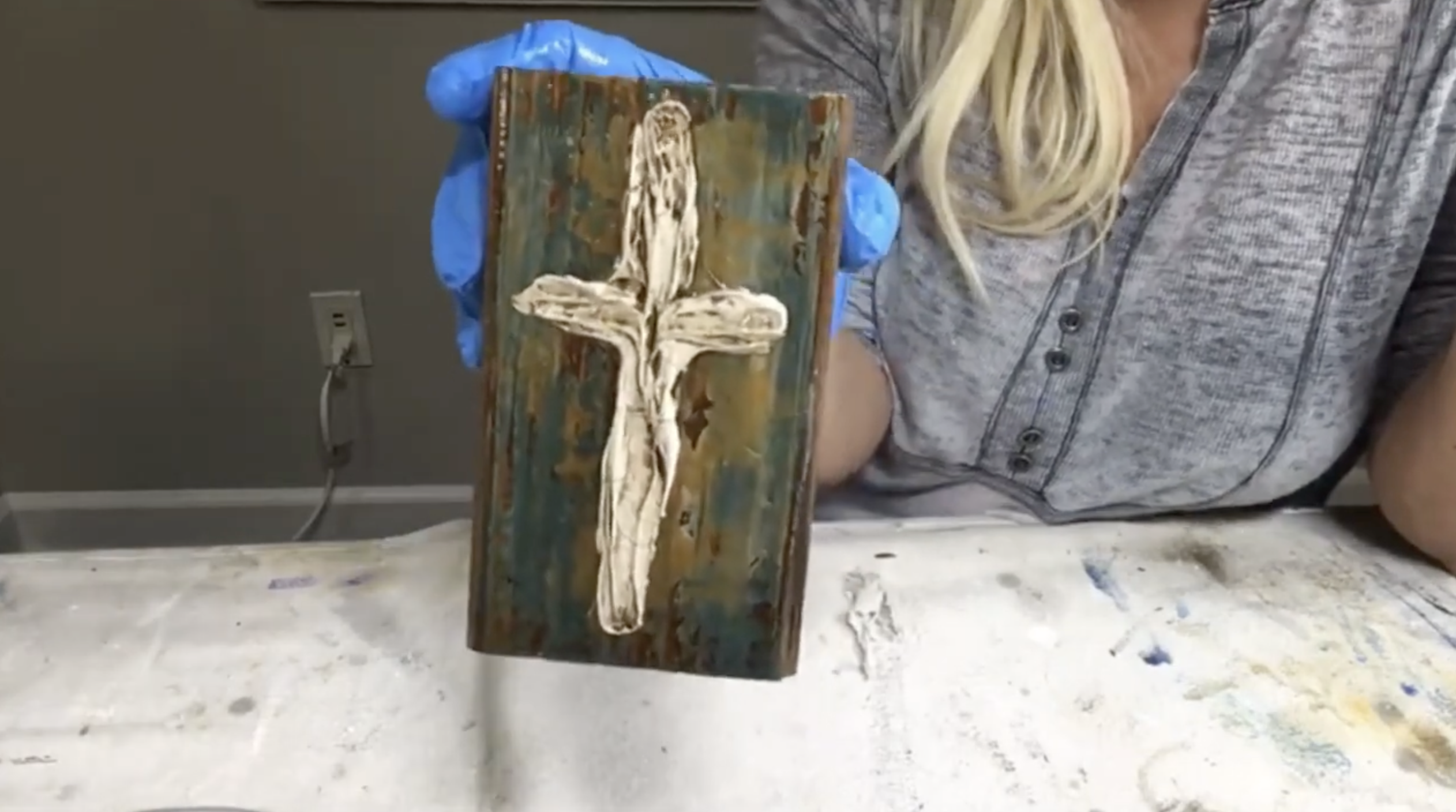Today we’re creating a beautiful textured cross shelf-sitter featuring layered acrylic paint, metallic gold accents, modeling paste (or Venetian plaster), antiquing glaze, and a glossy resin finish. This project is simple, affordable, and completely customizable. No two crosses will ever look the same, and that variation is what makes them so special!